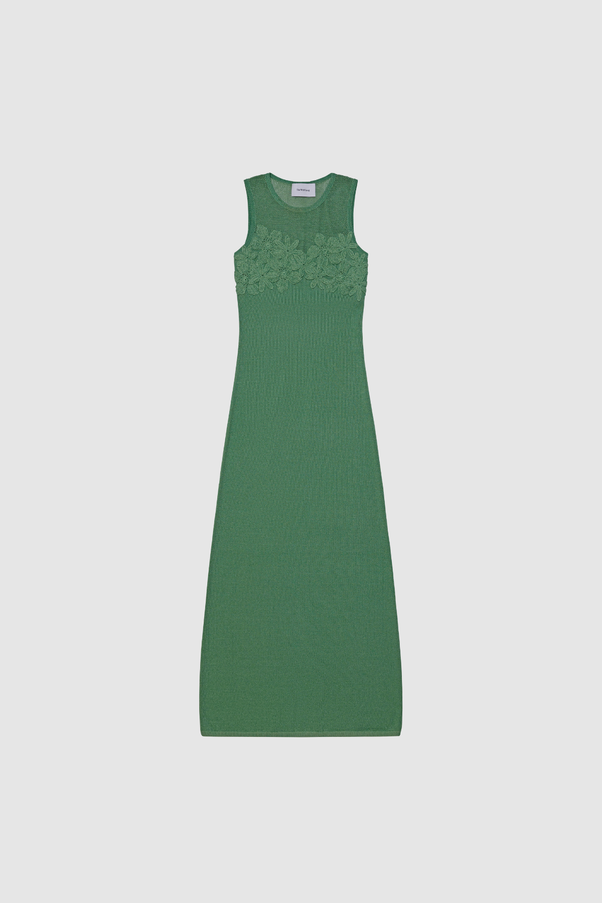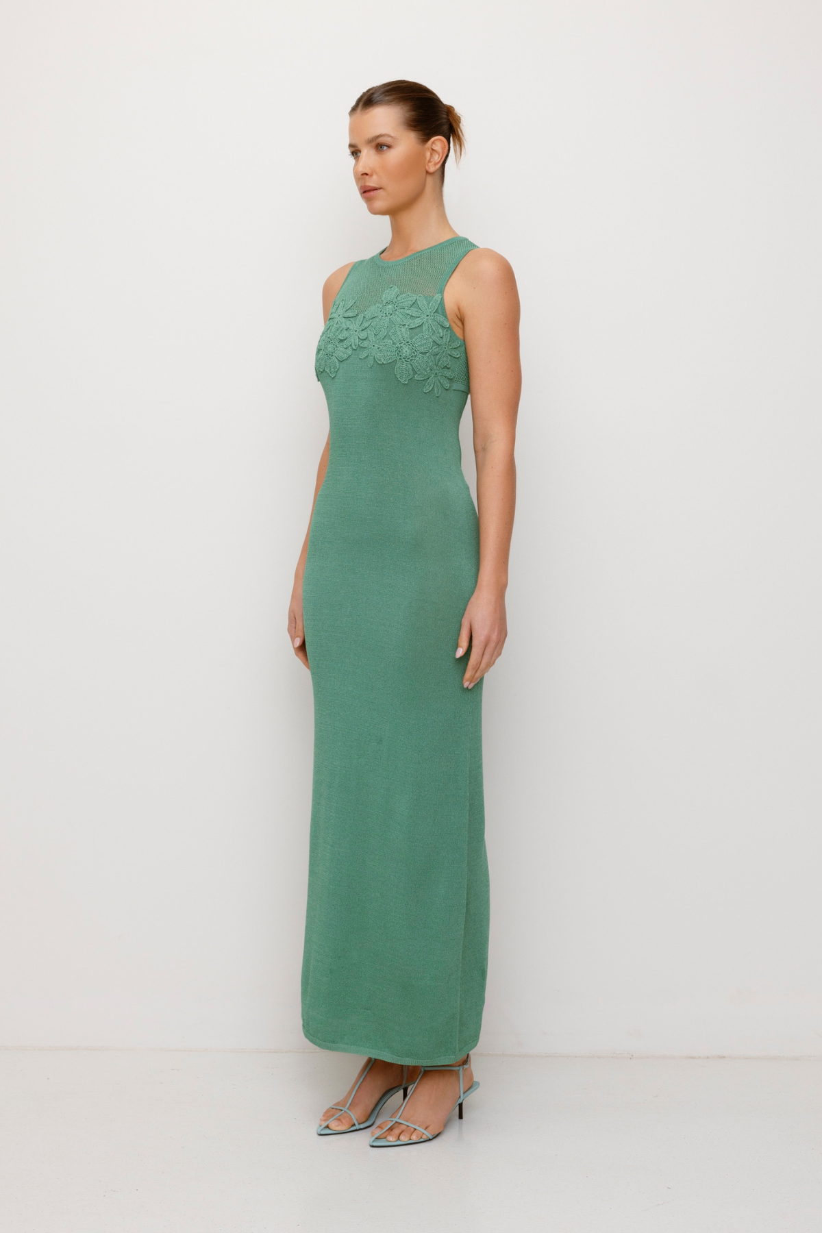 Embellished to perfection, the Camilla Maxi Dress is a sheer yet polished addition to your closet. This stretchy knit dress is adorned with 3D hand-crochet floral detailing and a flattering cut out on the back. Pair with a blazer for the office or wear with your favourite going out shoes for drinks.