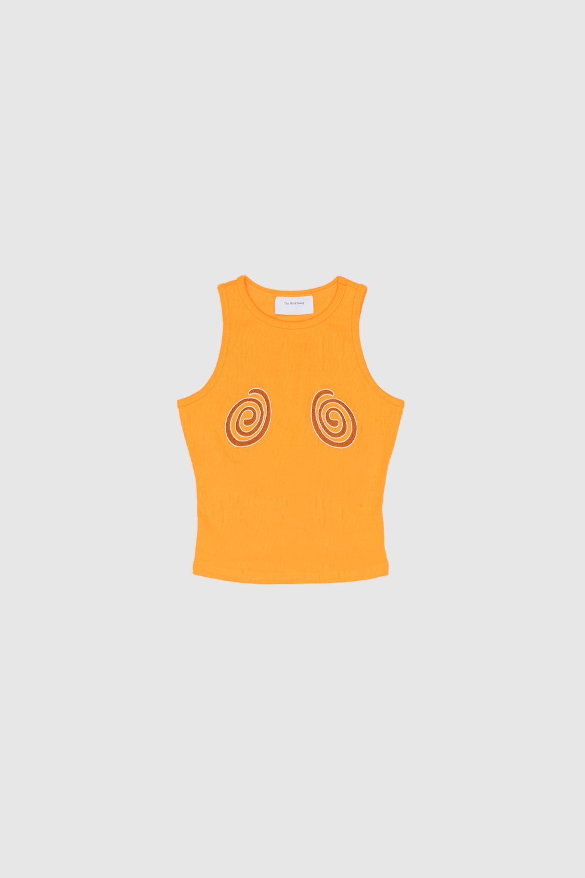 The Giro Tank is effortless ease with a twist, a ribbed cotton tank in the season's most zesty Tangerine hue. Playful swirl embroidery adds a feminine flirty edge.