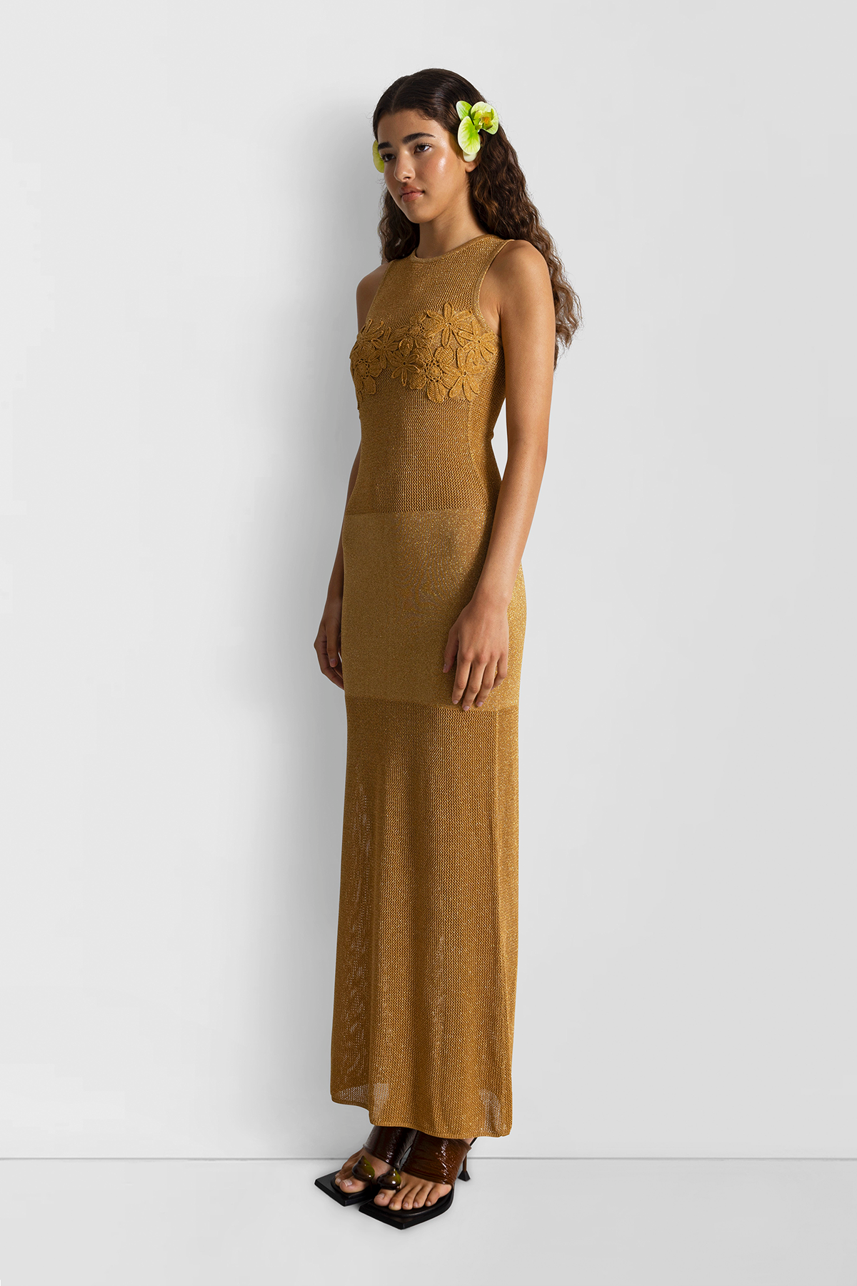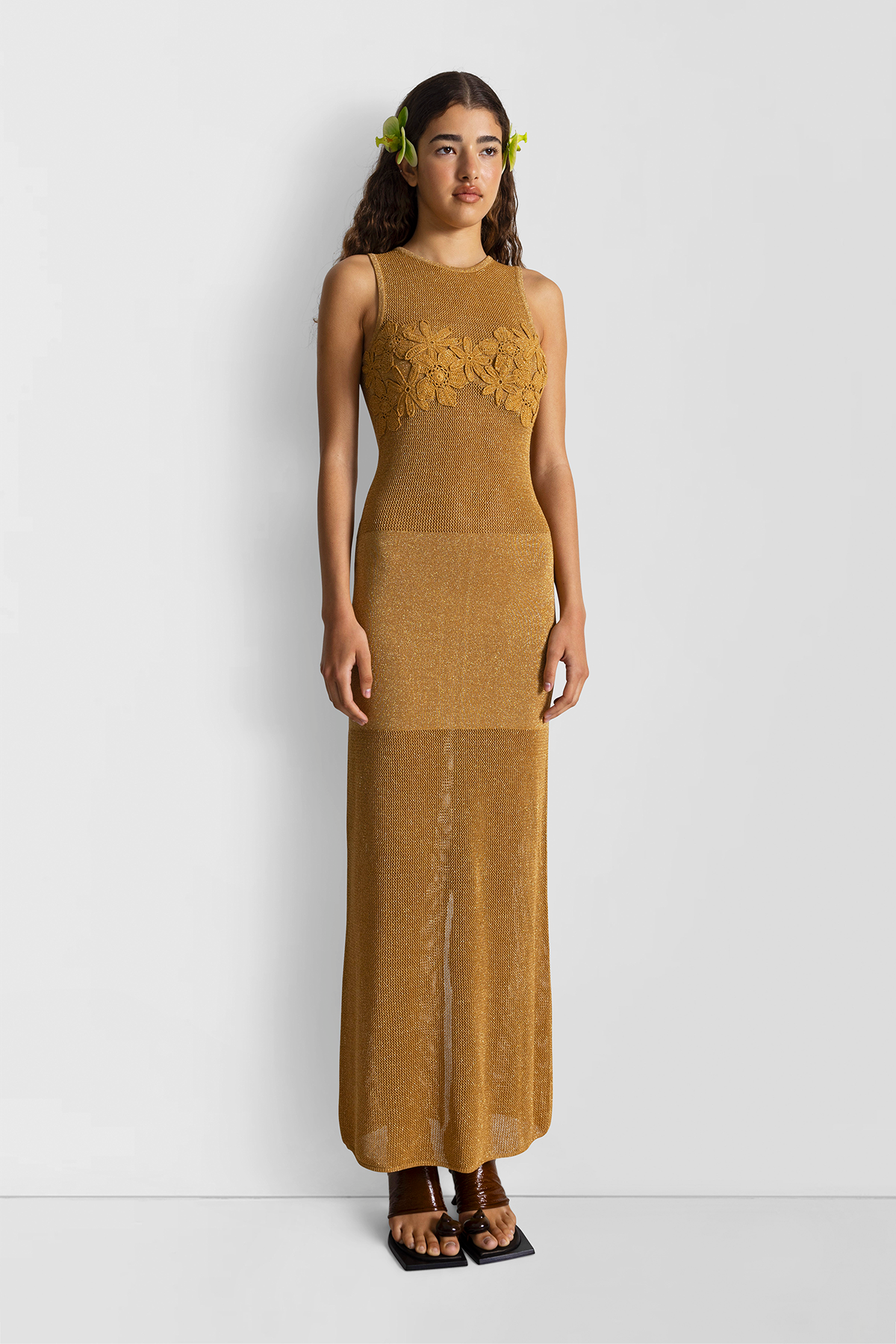 Introducing the Iris Maxi Dress, adorned with hand-crochet floral details, this dress showcases a unique blend of stretchy and textured knits for a flattering fit. Whether you’re heading to a daytime event or an evening gathering, the Iris Maxi Dress adapts effortlessly, making it a staple piece in your wardrobe for any occasion.