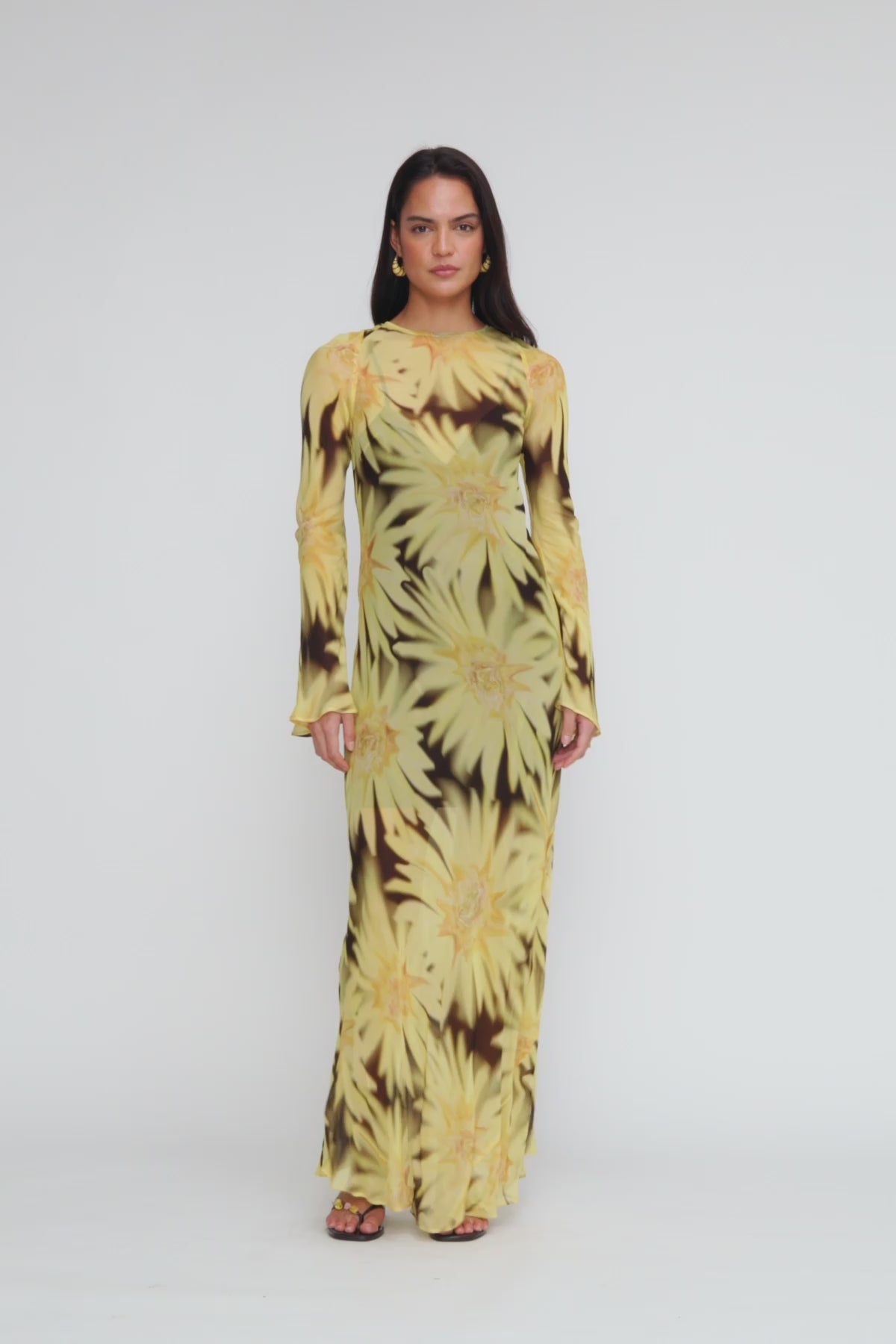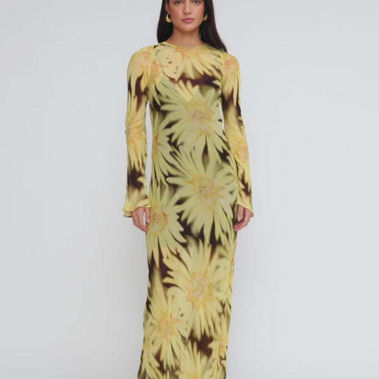 For those who love to make a statement, the Lottie Maxi Dress is your go-to choice. This striking maxi features elegant belled sleeves that flow gracefully, a scooped back and tie detail and a detachable slip lining for styling versatility. A light and airy viscose fabric, in our exclusive Chocolate Sunflower print, designed in collaboration with print artist Sally Hungerford.