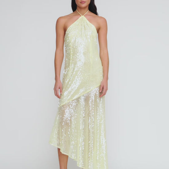 Sequins after dark? A match made in heaven. Slip into the Mina Maxi Dress, a shimmering, floaty sheath, made to glide over your body like a waterfall. With its asymmetric, fluted hemline, the Mina sparkles with every step.