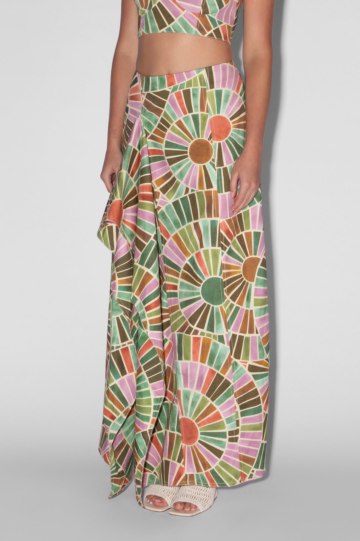 Meet the Samba Midi Skirt. A highwaisted style with front folded drape detail and thigh high split for drama. Pair back with the matching Samba Bustier and a heel for date night, or with a white tee and sneakers for everyday cool.