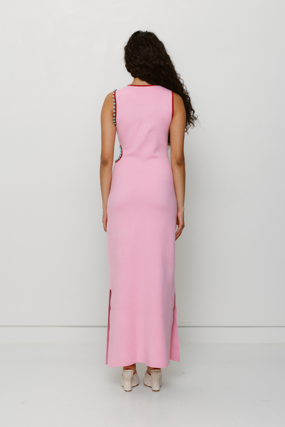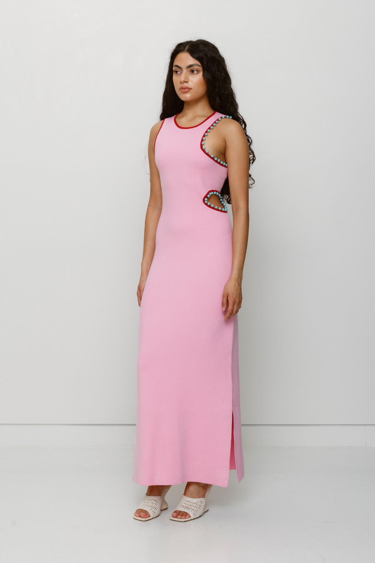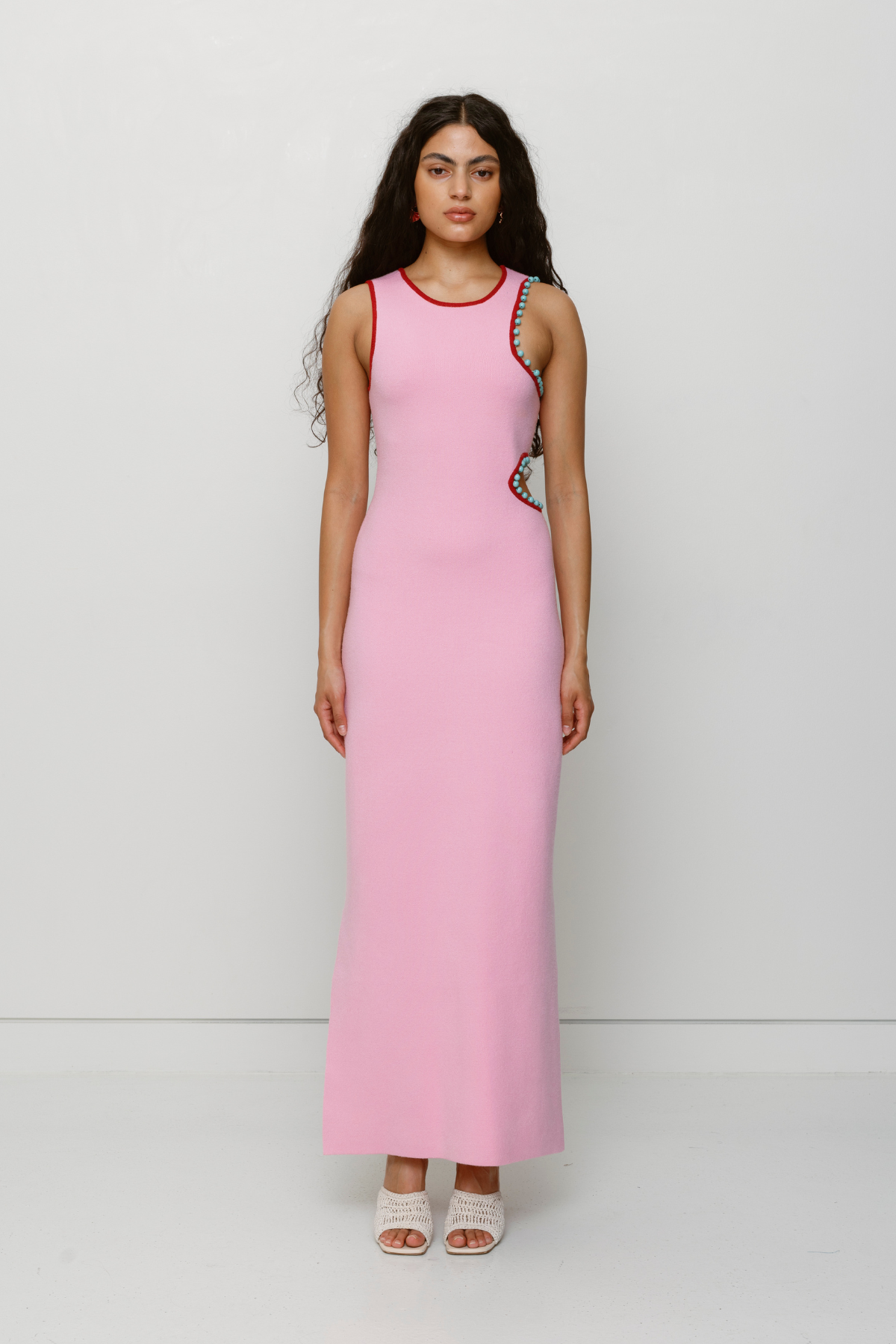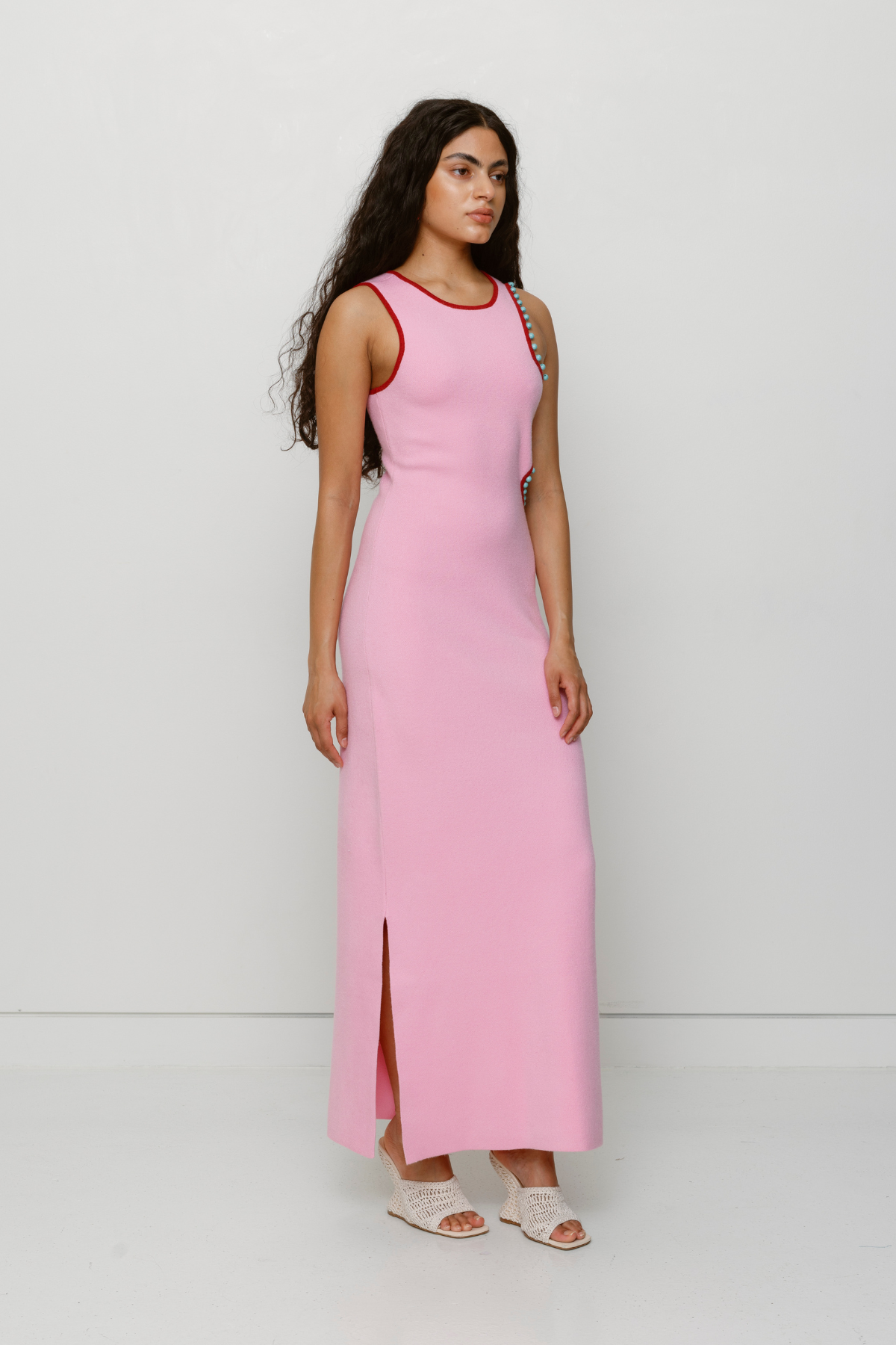 The Escena Midi Dress is your answer to stretchy, chic, comfort. A viscose blend knit made to hug your curves, embellished with a beaded detail on the arm hole and waist for that extra va-va-voom. The perfect crewneck cut-out knit dress for layering and day-to-night dressing.