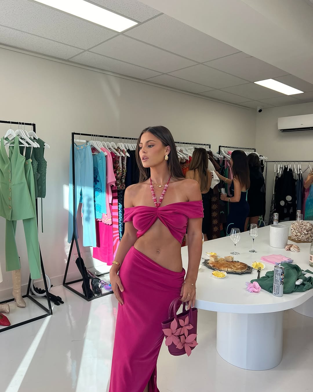 The Flor Top is your go-to for bold, modern elegance. Crafted from a soft, body -skimming jersey, it features an asymmetric neckline and a single beaded strap that adds a subtle touch of texture and shine. The minimalist silhouette flatters with ease, making it the perfect piece to elevate your event look. Style it with denim for a refined take on off-duty, or pair it with the matching Flor Skirt for a statement set that turns heads.