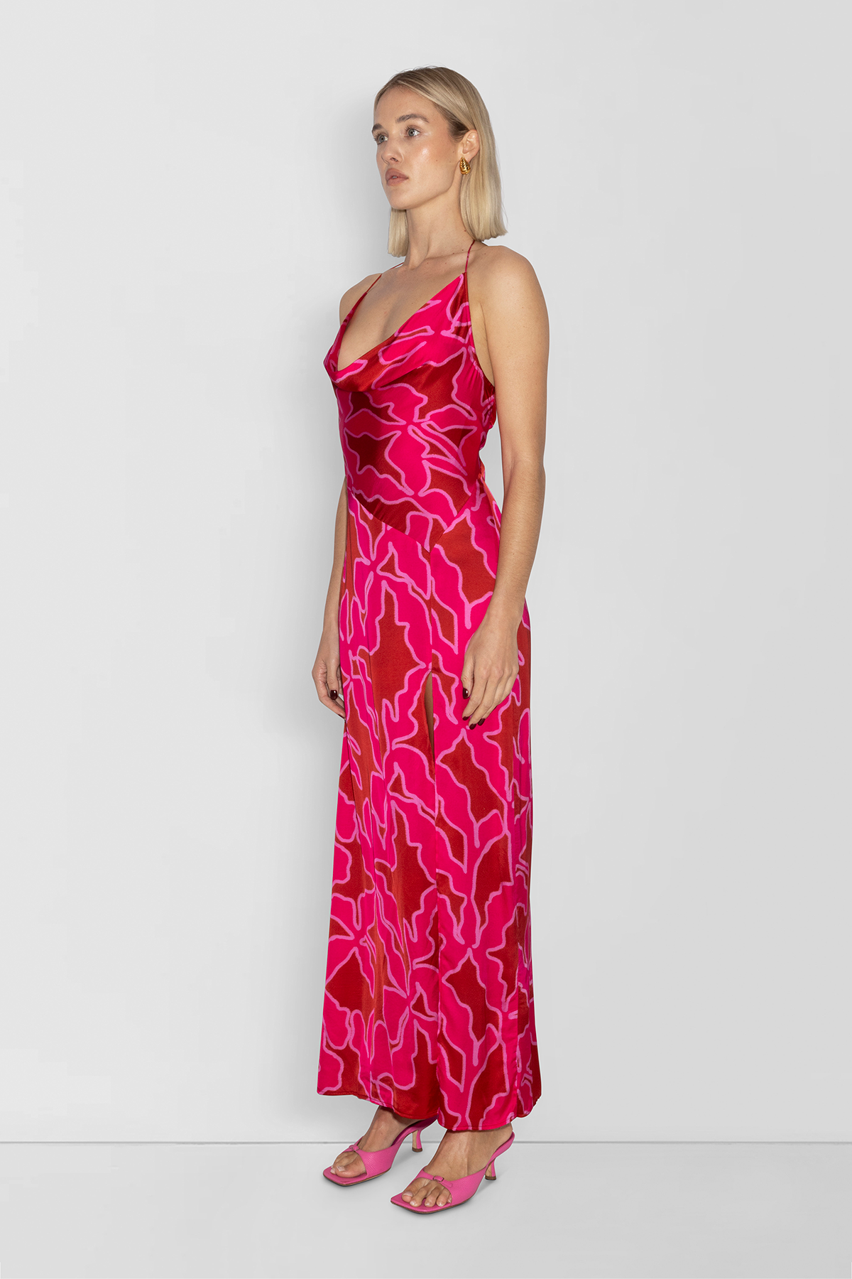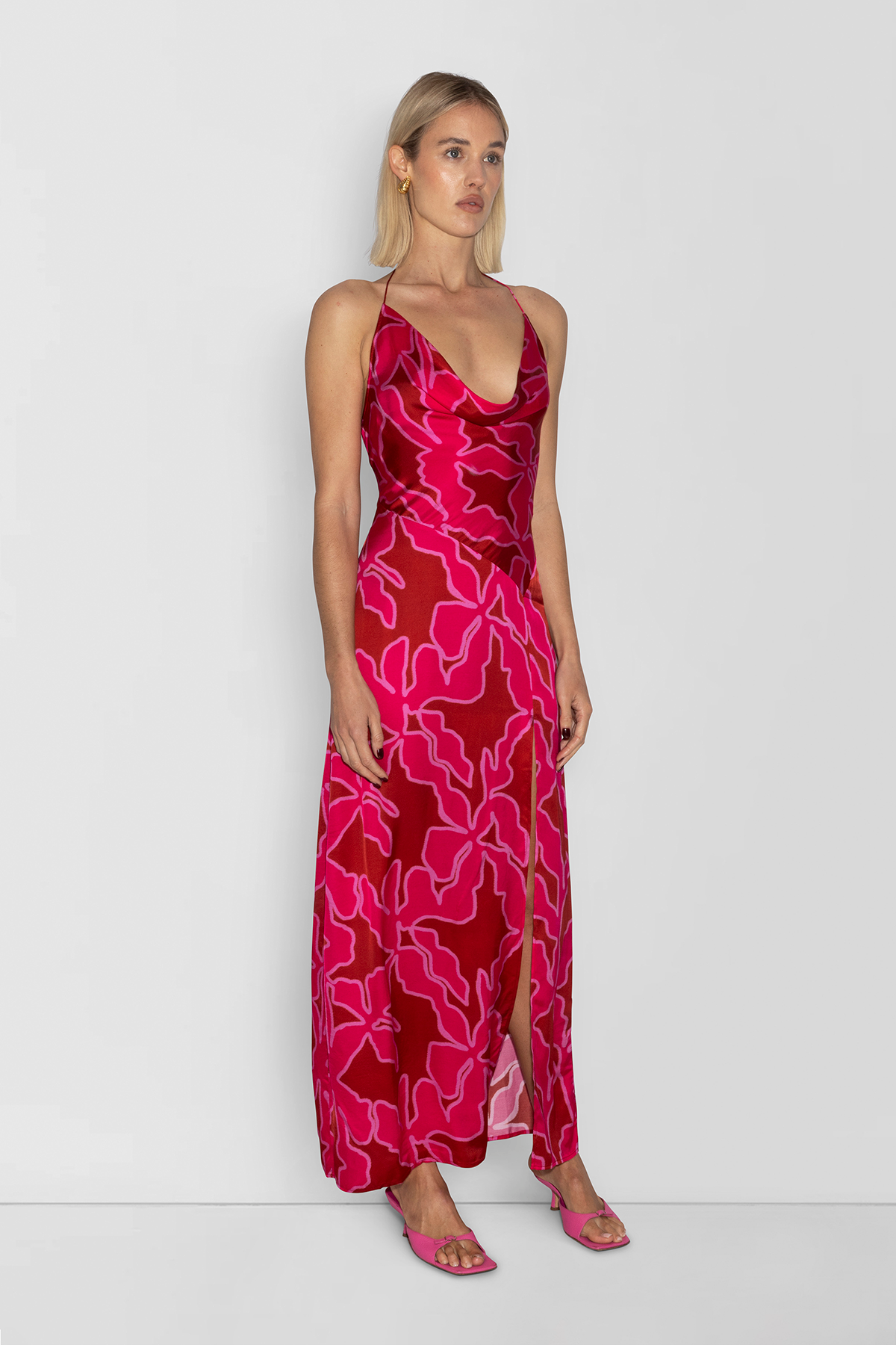 Fall in love with the Lenee Cowl Maxi Dress. This elegant piece features a soft cowl neckline and a low back with striking strap detailing. The Lenee Cowl Maxi Dress is perfect for making a statement at any special occasion. Step into the spotlight and let the Lenee dress do the talking.