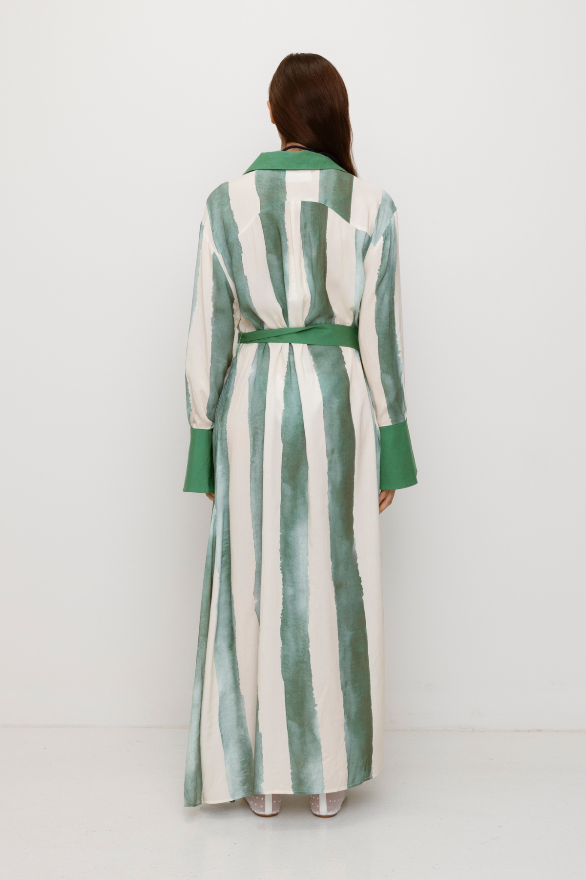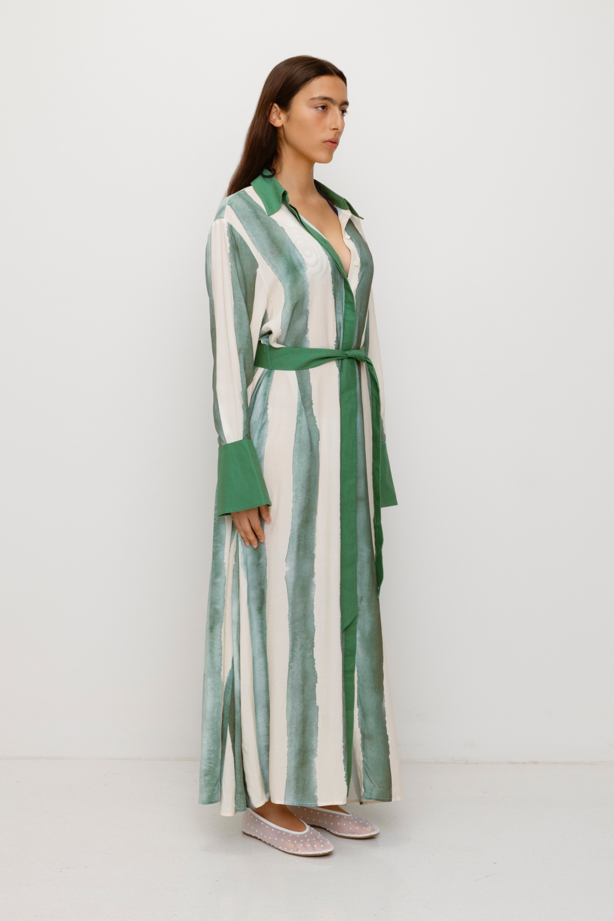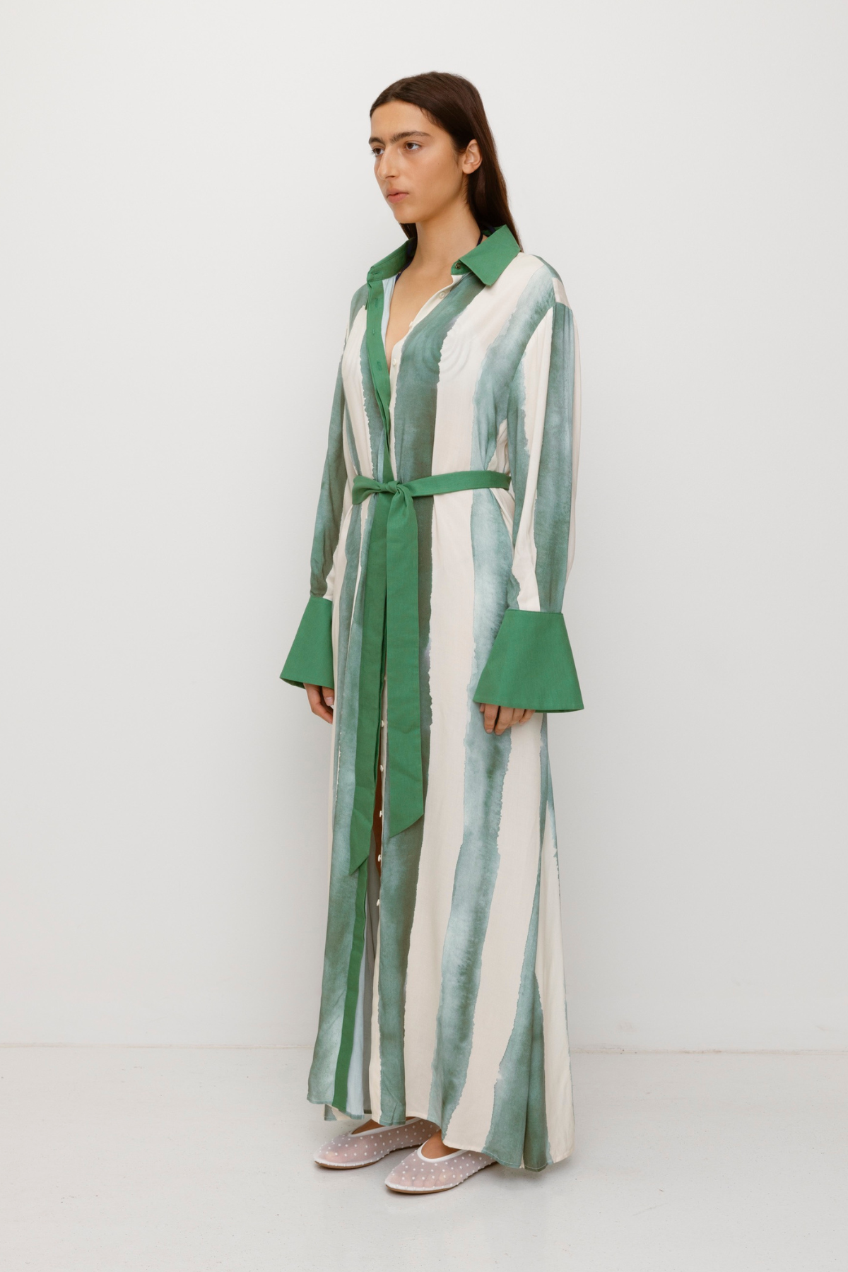 The Lua Cover Up is destined to become your summer long-sleeve essential. This ethereal maxi dress is beautifully crafted with a detachable tie at the waist, contrasting paneling, and delicate godets along the side seams, creating a silhouette that flows gracefully with every step.