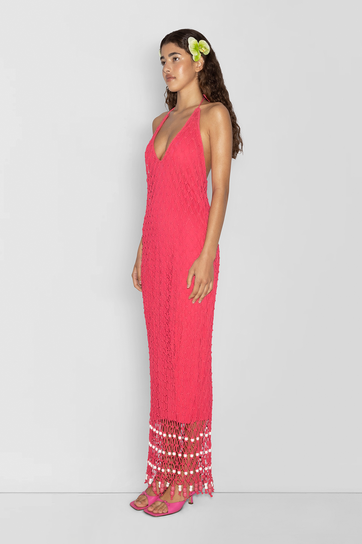 Introducing the Reis Beaded Macrame Maxi Dress: an elegant evolution of our iconic set, now transformed into a stunning dress, perfect for festivals and special occasions. Featuring exquisite handmade macrame weaving with a striking contrast beaded hem for a touch of glamor. The adjustable halter neck tie allows for a customised fit, ensuring you look and feel fabulous.