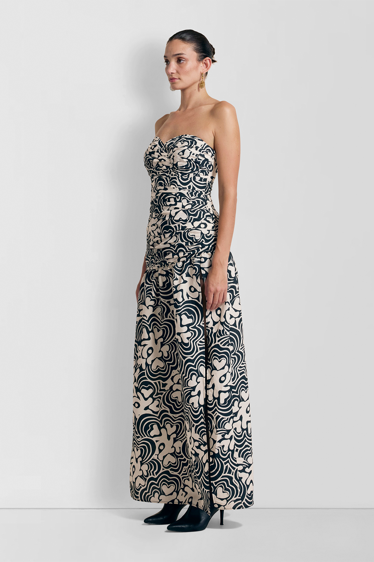 Effortless yet striking, the Dolcie Strapless Maxi Dress is designed to turn heads. Featuring a sculpted strapless neckline and flattering pleated detailing, it falls into a sweeping silhouette with a daring thigh-high side split. Both elegant and bold, Dolcie is the dress of the season—made to stand out at every event, from sunset soirées to evening occasions.