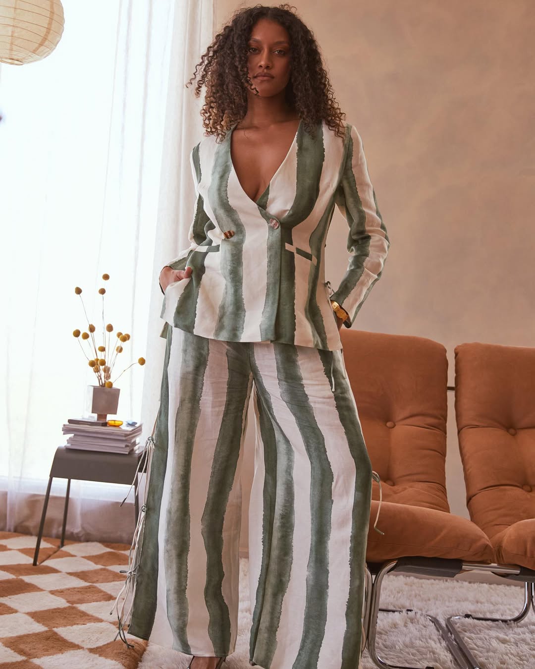 The Havana Blazer features a slightly boxy fit with a double-breasted silhouette, complete with side splits and tie detailing for a distinctive TWG flair. Wear by its self or paired with it's matching pants for an effortlessly stylish look.