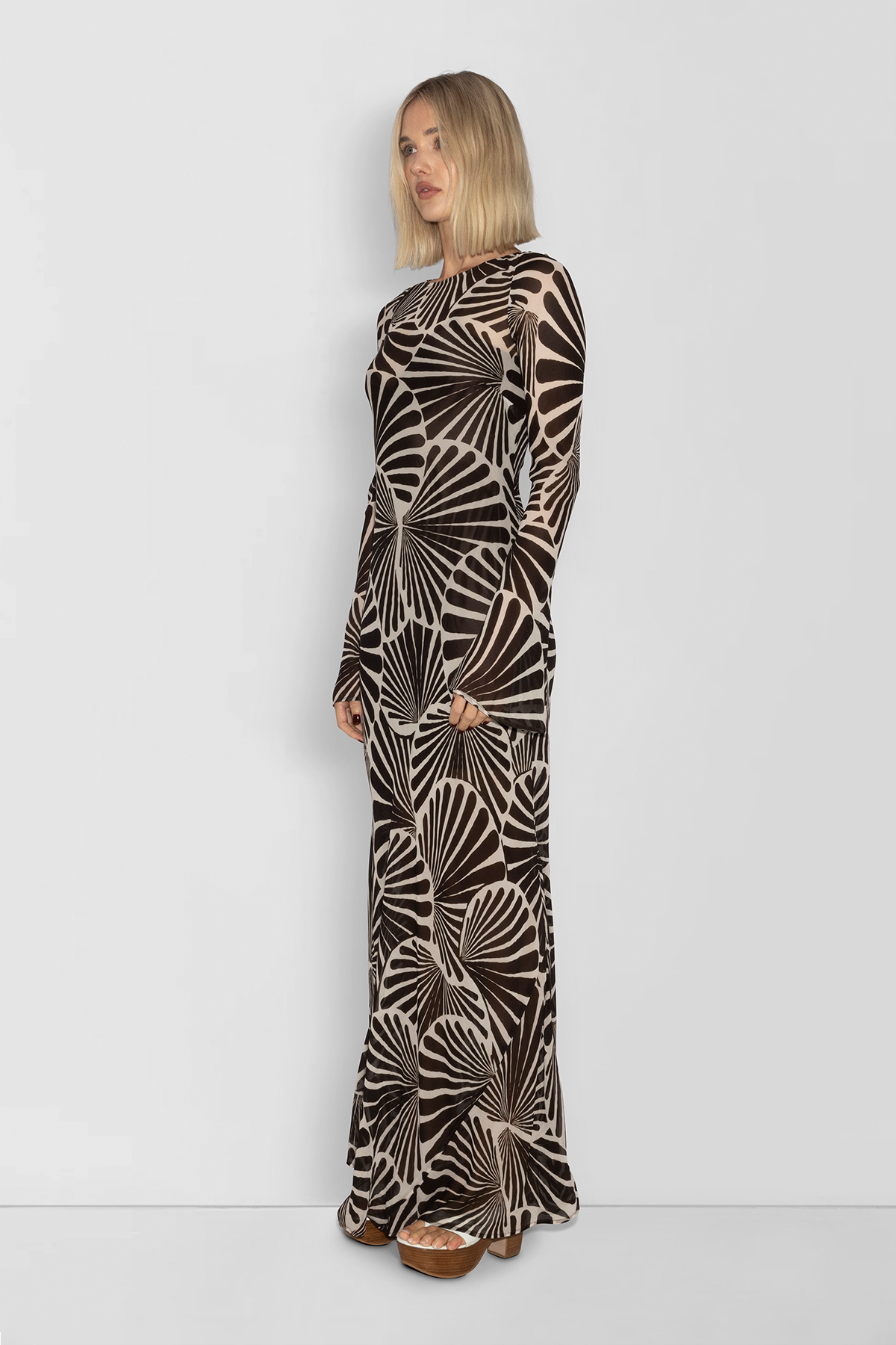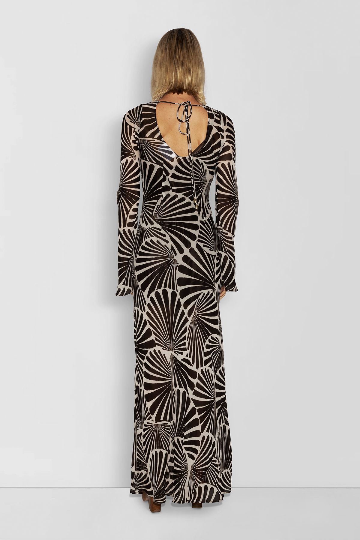 For those who love to make a statement, the Lottie Maxi Dress is your go-to choice. This striking dress showcases a captivating abstract floral print and elegant belled sleeves that flow gracefully. The detachable slip lining adds versatility, while the cut-out and tie detail at the back offer a touch of allure.