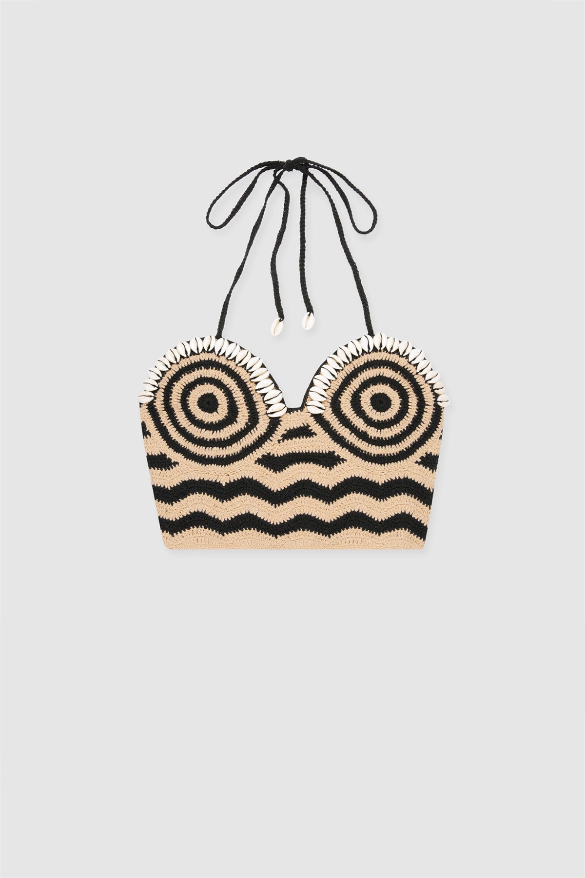 The Merenda Crochet Top is a statement bodice, adorned with feature cowrie shells. Designed to layer, or pair back with the matching Merenda Skirt for an iconic total look.