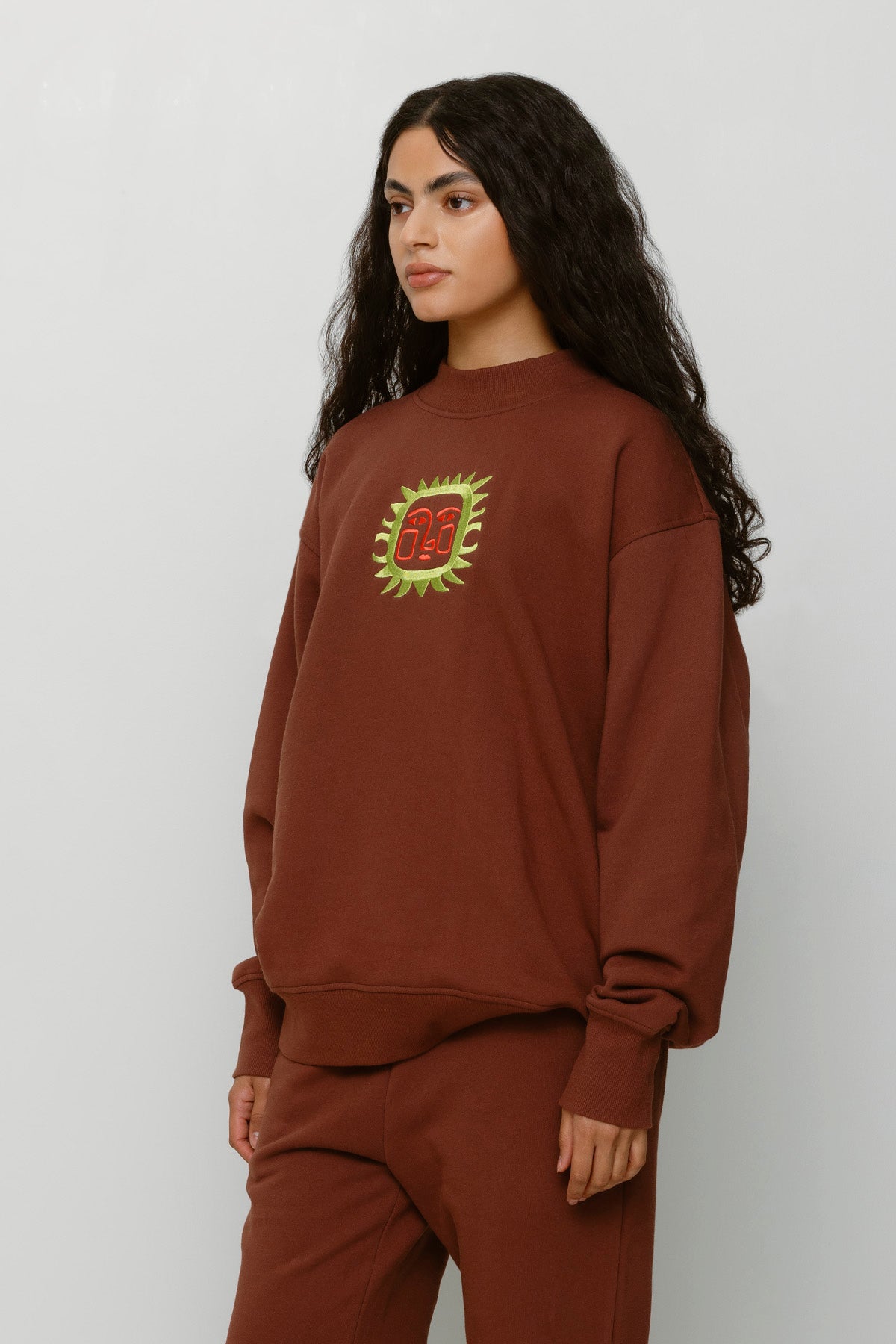Loungewear you'll actually want to leave the house in! Our Sol Sweater feature a relaxed fit crafted from the softest cotton fabric. This sweater is elevated with our custom embroidered, 70s-inspired motif.