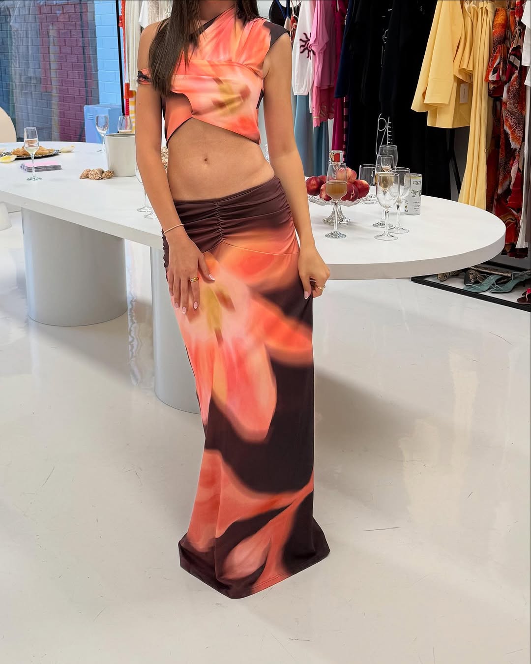 Your next event piece has arrived: meet the Veda Top. With its striking asymmetric neckline and soft jersey fabrication, this top offers an effortlessly chic silhouette. The custom TWG placement print adds a unique touch, making it the perfect choice for those looking to stand out. Whether paired with jeans for a laid-back yet polished look or styled with its matching skirt for a coordinated ensemble, the Veda Top ensures you turn heads wherever you go. Versatile, eye-catching, and designed for comfort, it’s a must-have for any wardrobe.