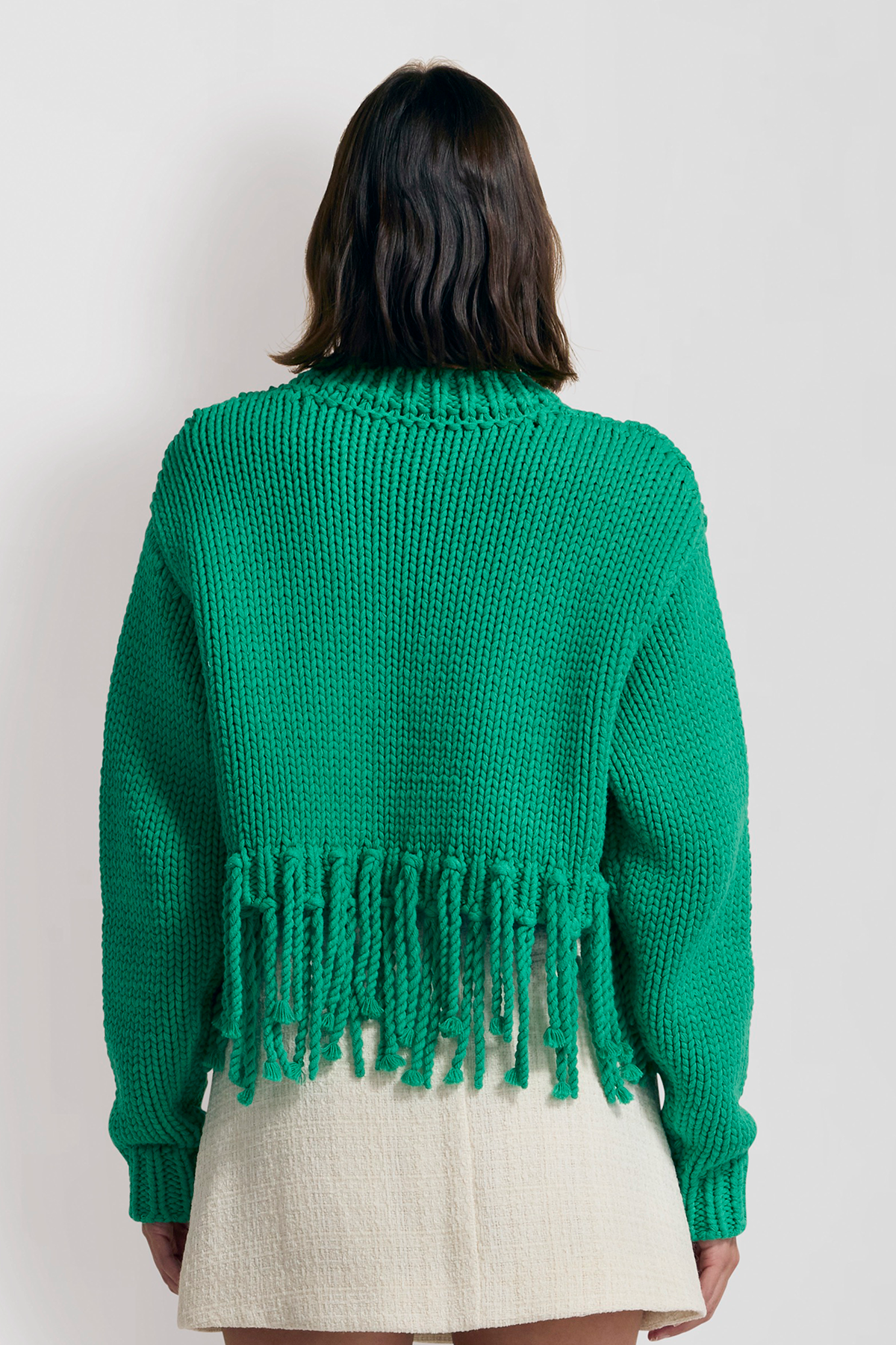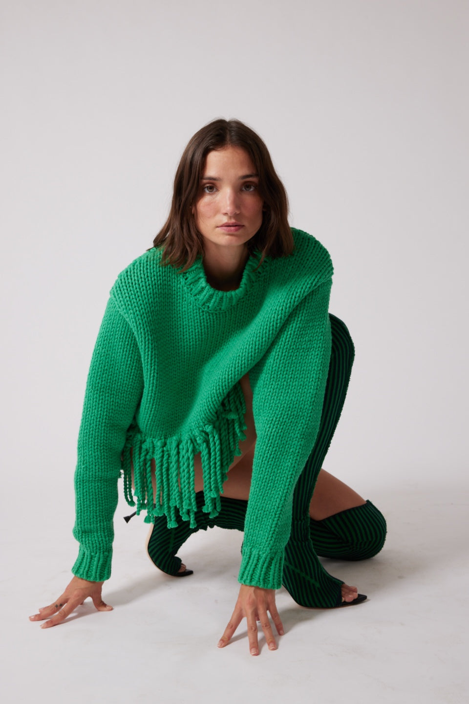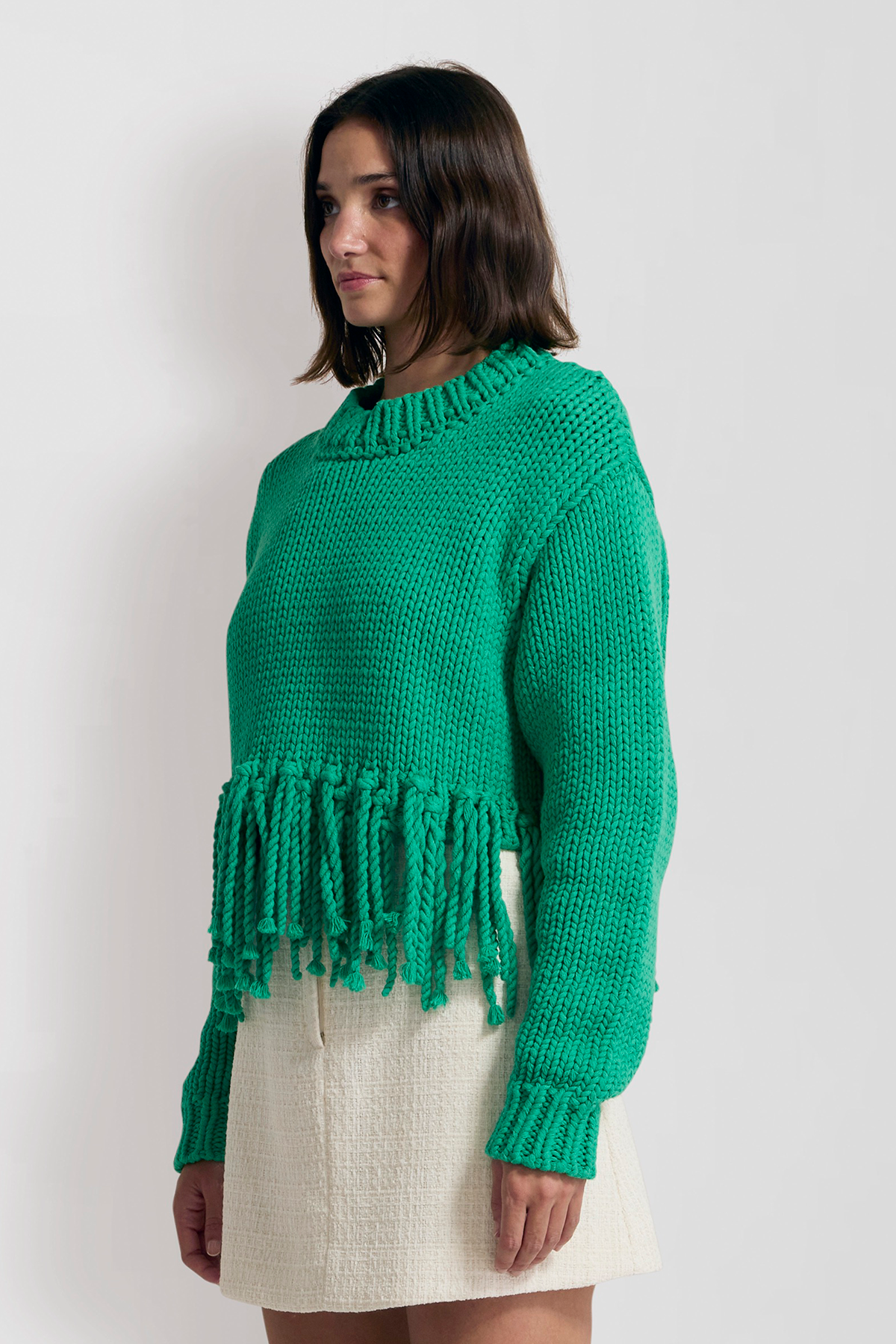 Bold and fun, the Verde Fringe Knit is uniquely TWG. Featuring a playful fringed hemline, with ribbed sleeve and neck hems. The Verde Fringe Knit will brighten up any winter wardrobe. Stand out from the crowd in this statement knit for easy weekday to weekend wear.