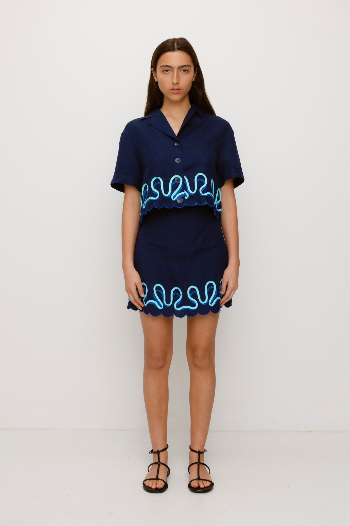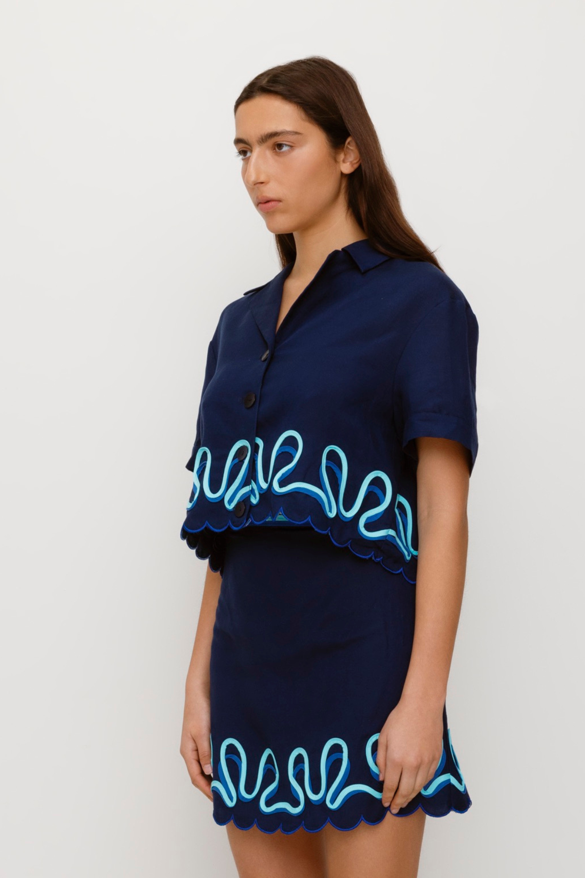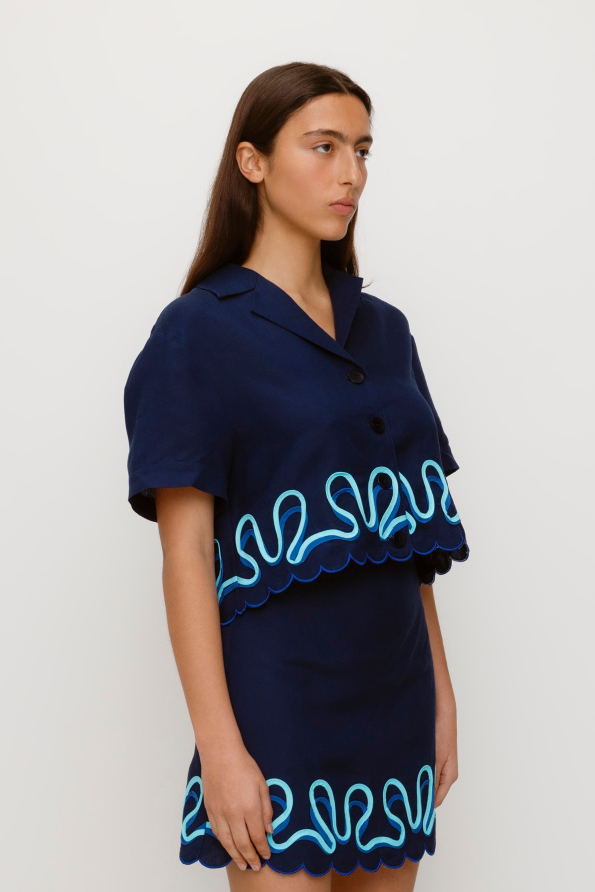 Introducing the Zabelle Shirt, a must-have shirt for your wardrobe. This top has a scalloped hem detail and contrast colour detailing. Pair with a casual pant for daytime outings or dressed up with the Zabelle skirt to make a real statement.¬â€