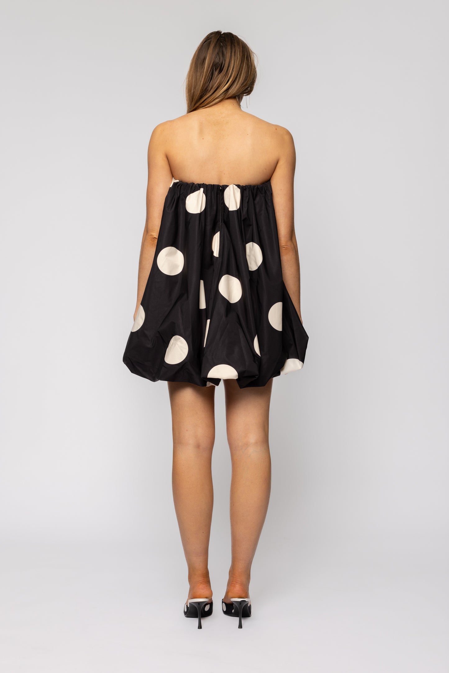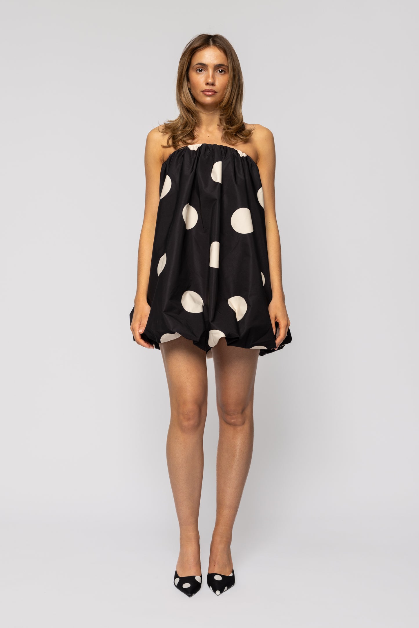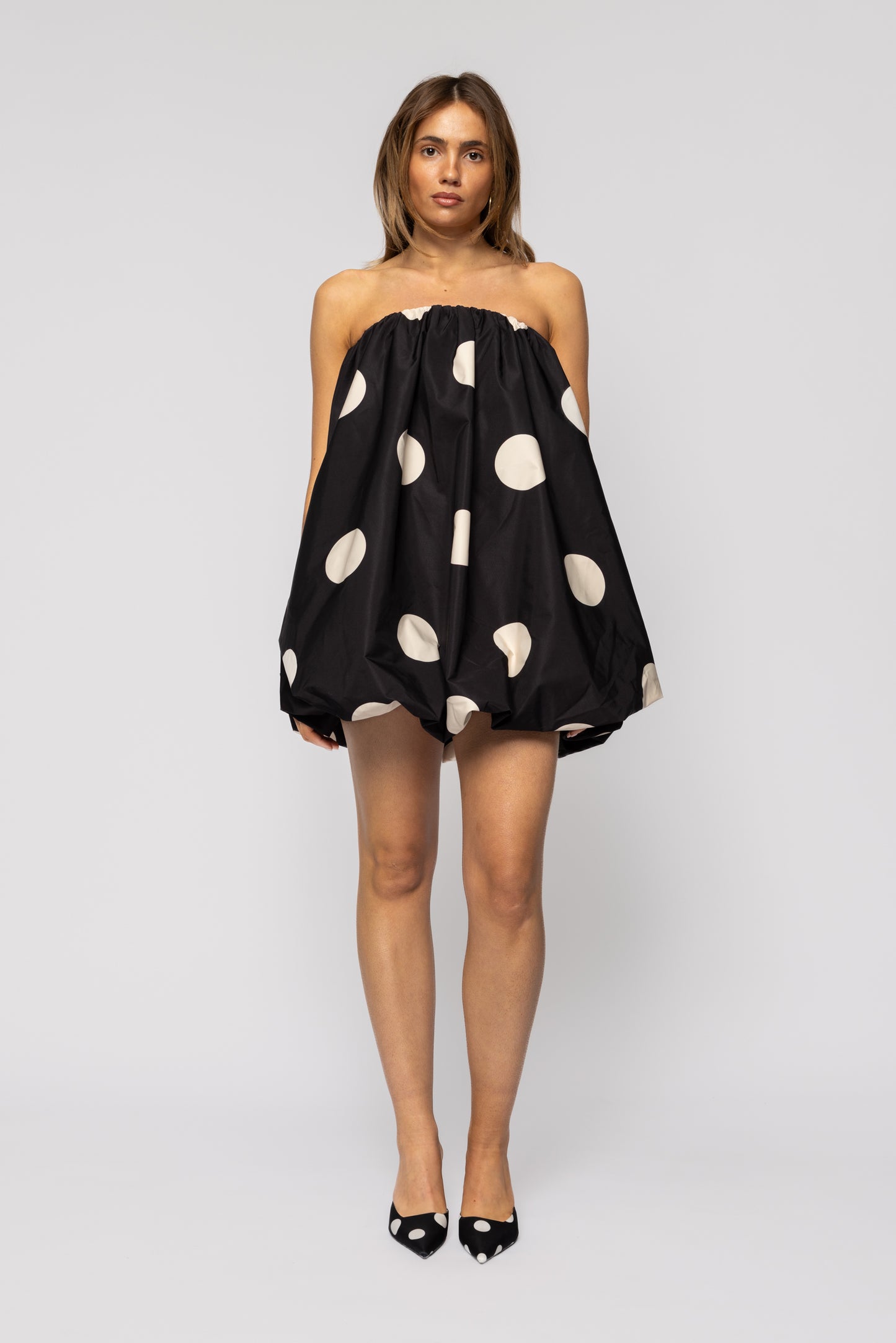 Our best-selling dress for a reason, the Gaia Bubble Dress is pure magic in motion. Featuring a bold spot print and voluminous bubble hem, this statement mini brings just the right amount of drama. Featuring an internal bodice that hugs you tight around the neckline, and an oversized easy to wear fit, the Gaia is perfect for long lunches, golden hour cocktails, or elevated event wear.