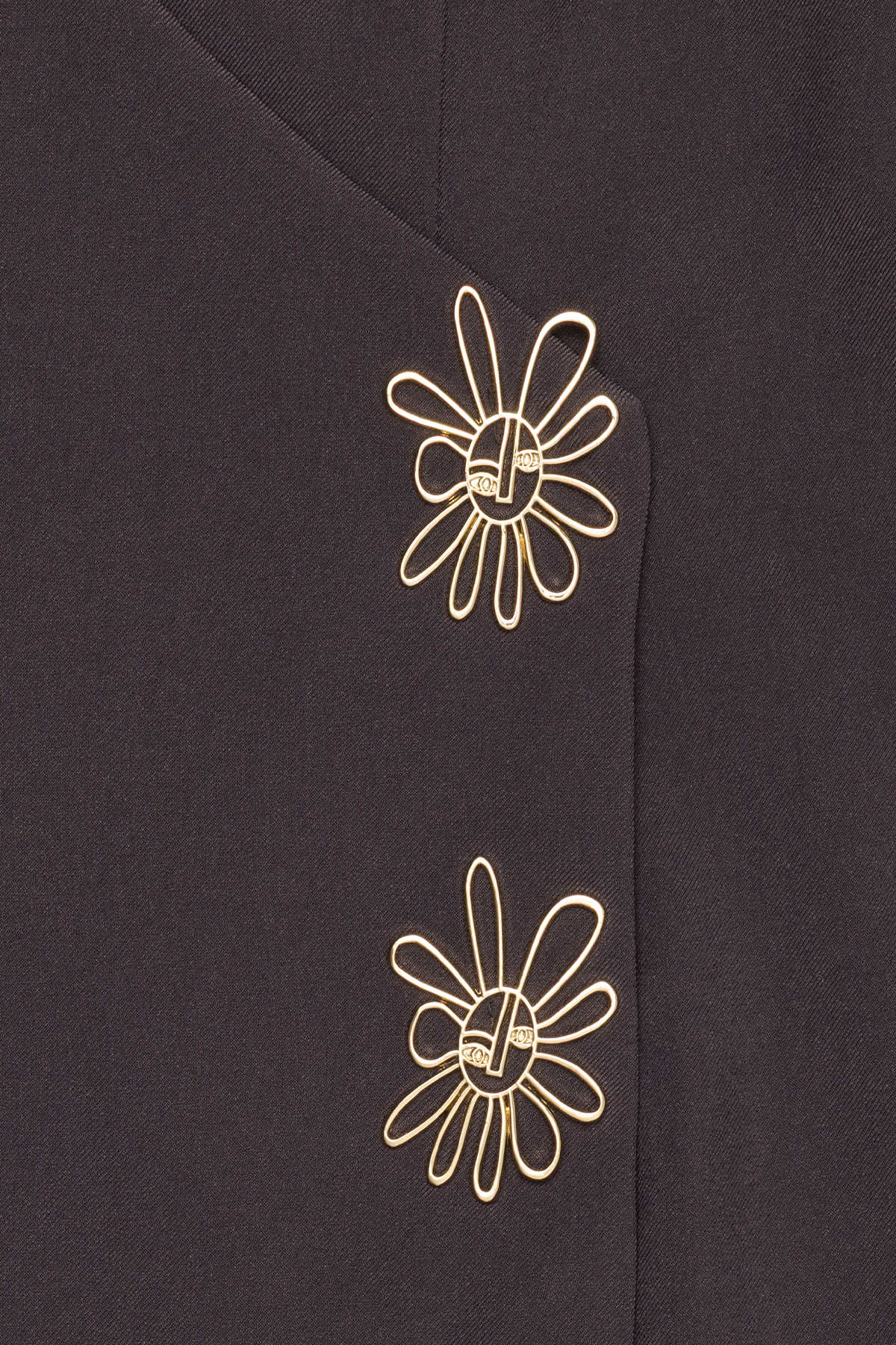 The Inka Vest Top seamlessly blends professional tailoring with a touch of bold, modern edge. Featuring a feminine halter neck tie and an asymmetric front closure, it’s elevated by custom TWG hardware. A zipper at the back has been added for ease of wear, making it effortless to slip on. Perfect for a polished, coordinated look with its matching pant or relaxed yet refined when paired with jeans.