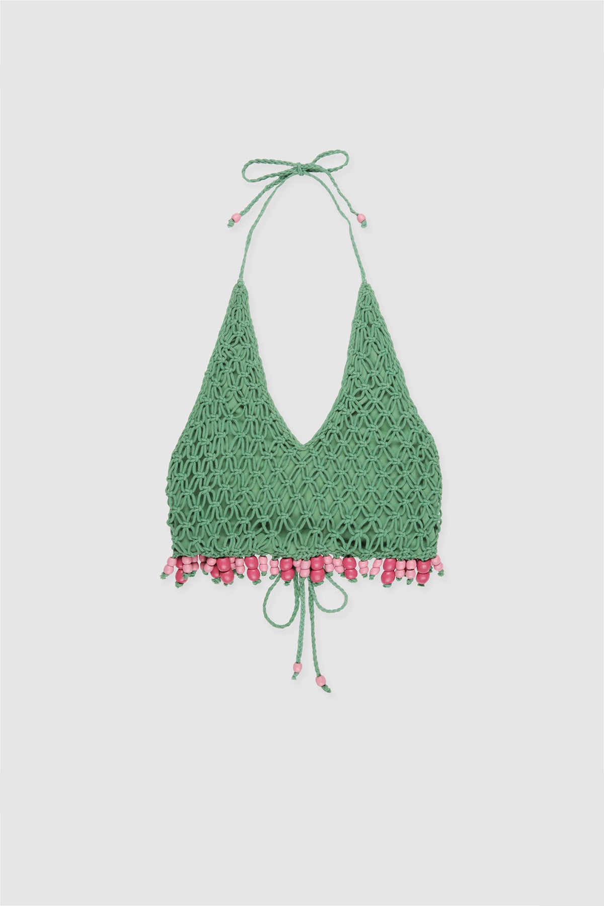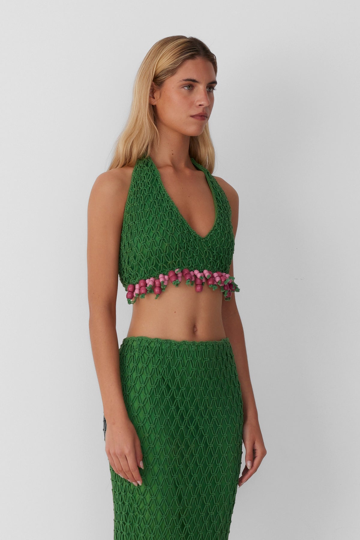 Meet the Reis Beaded Macrame Top, part of a statement set designed to treasure. Handmade macrame weaving, finished with a contrast beaded hem; the Reis set is perfect for festival and event wear.