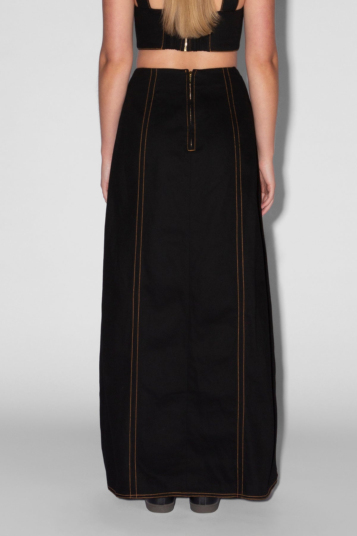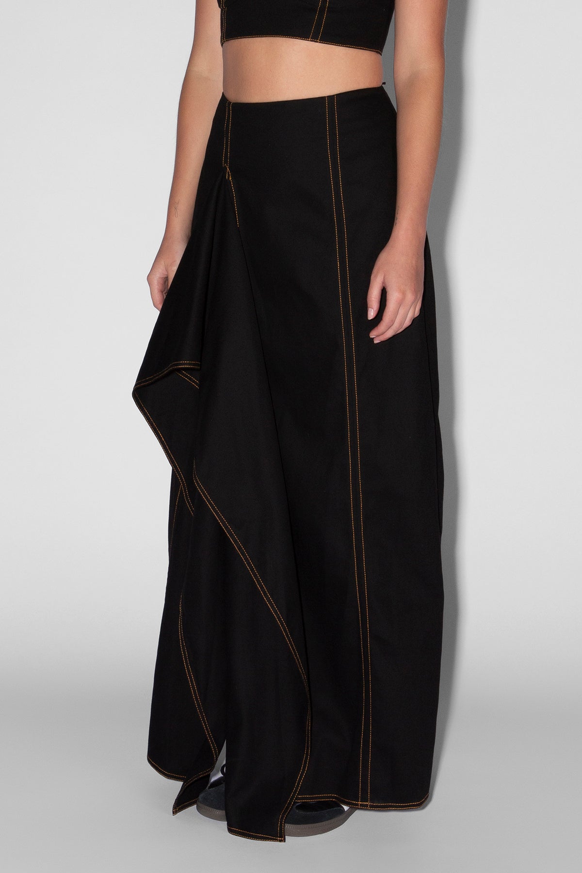 Meet the Samba Midi Skirt. A highwaisted style with front folded drape detail and thigh high split for drama. Pair back with the matching Samba Bustier and a heel for date night, or with a white tee and sneakers for everyday cool.
