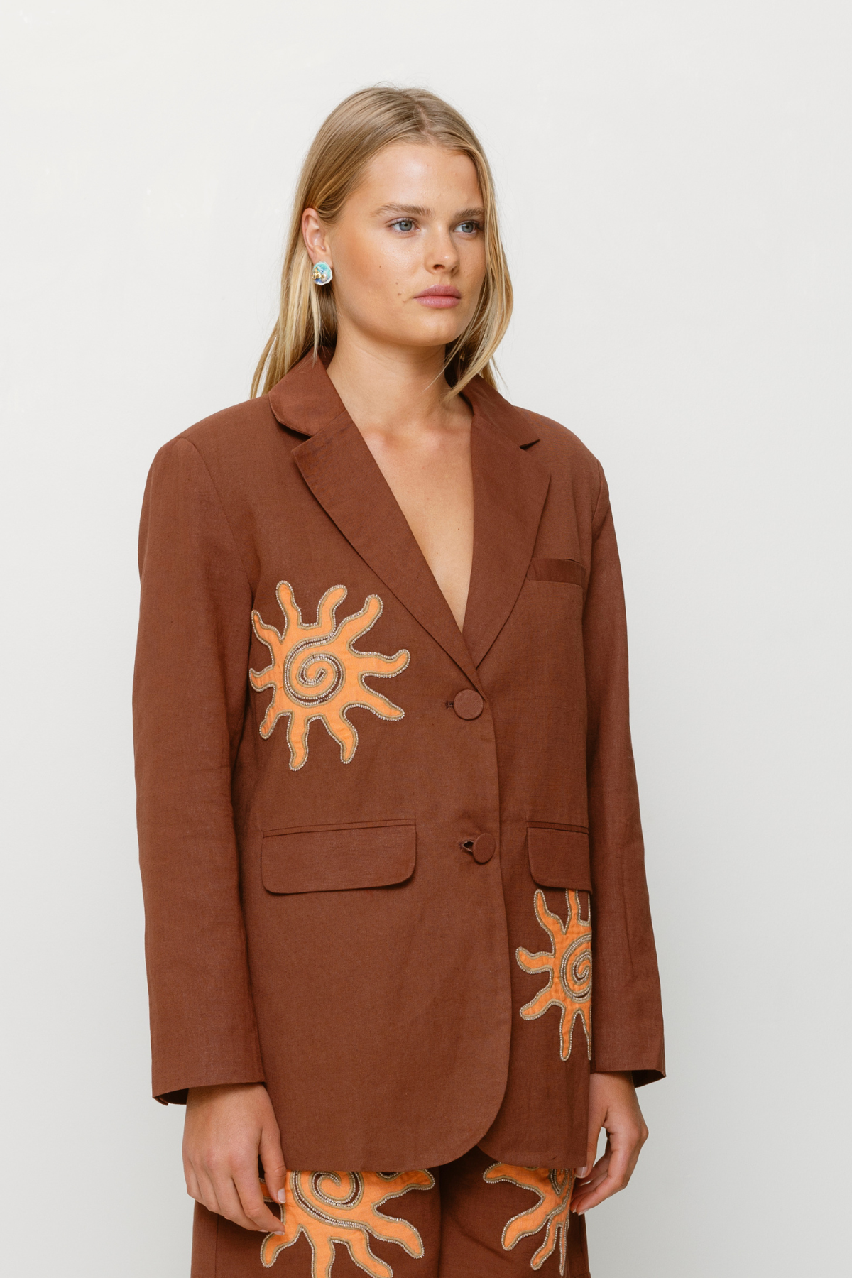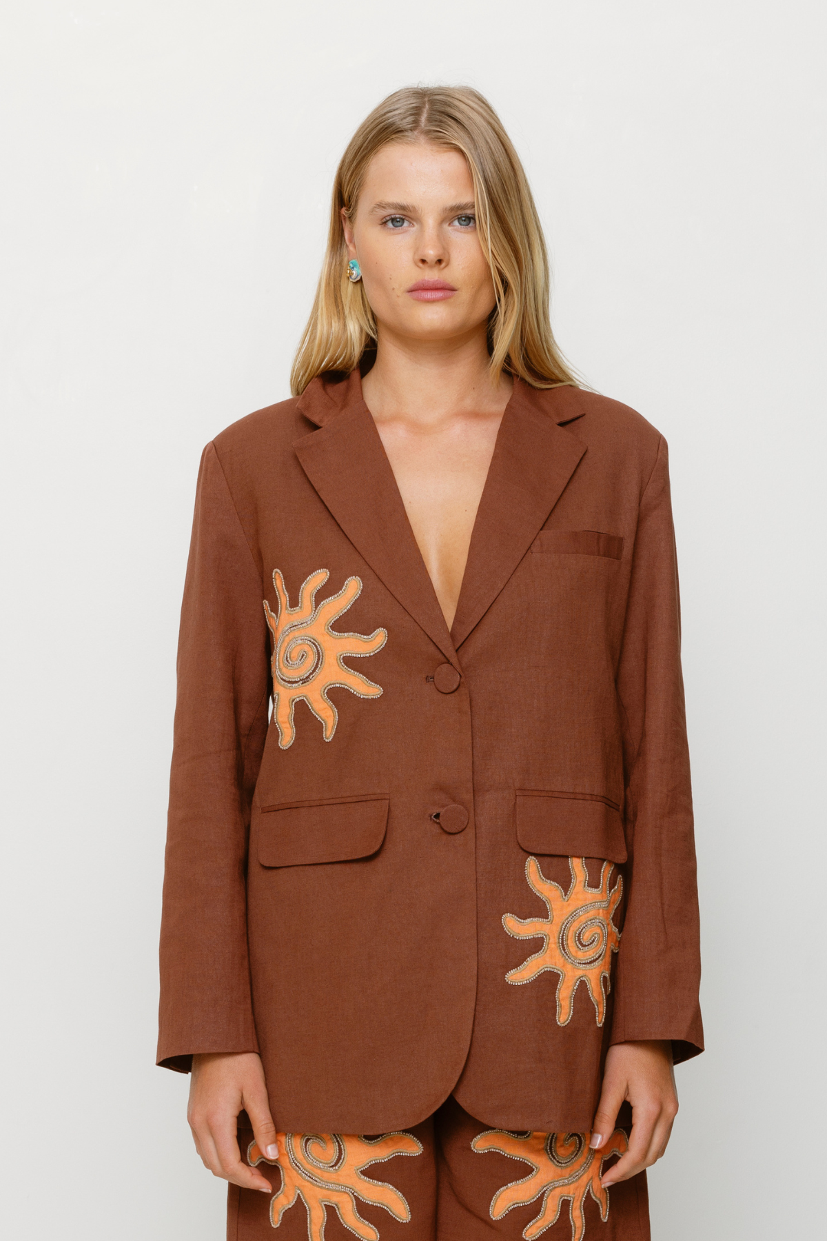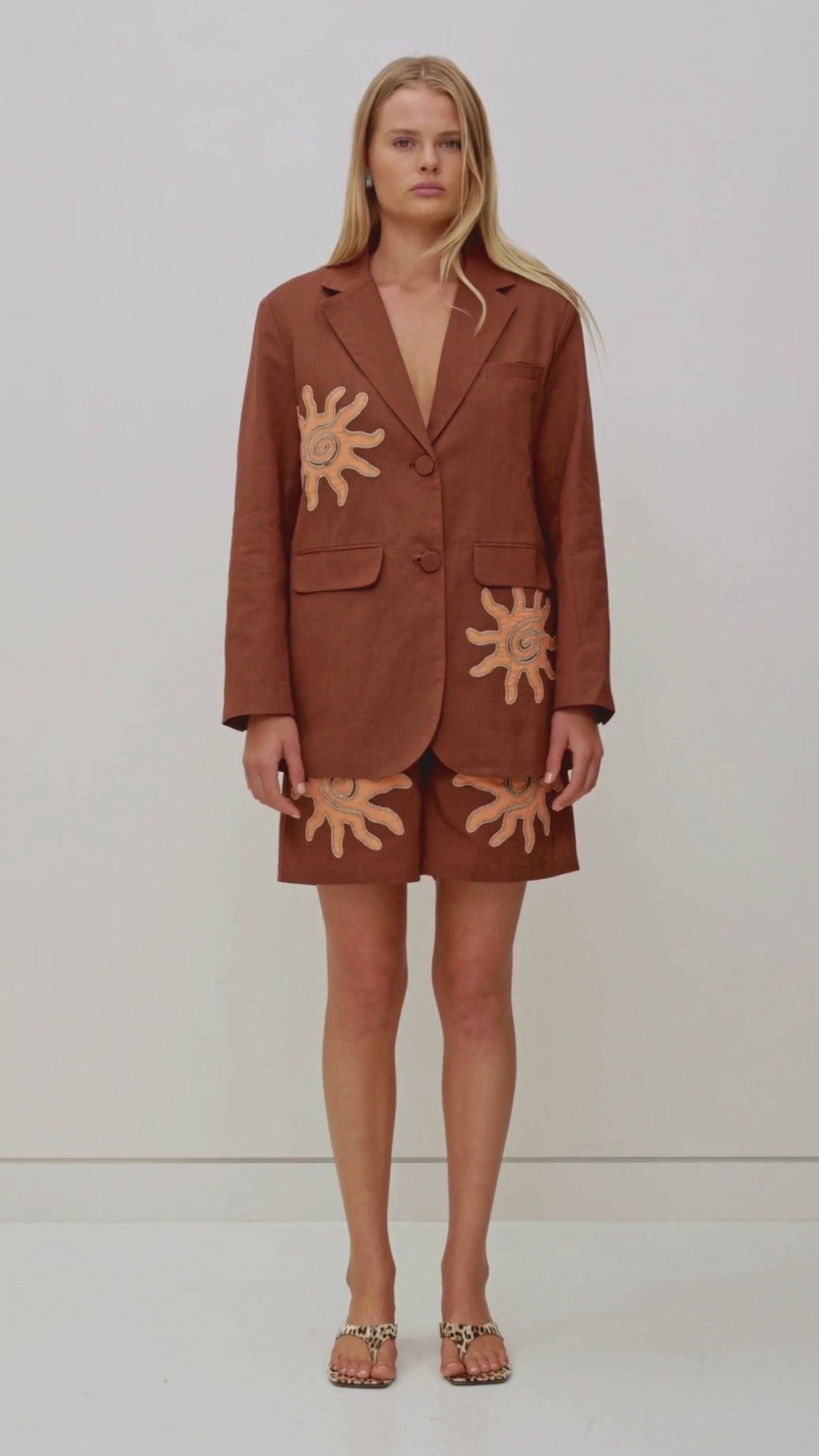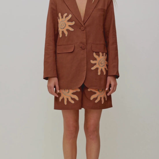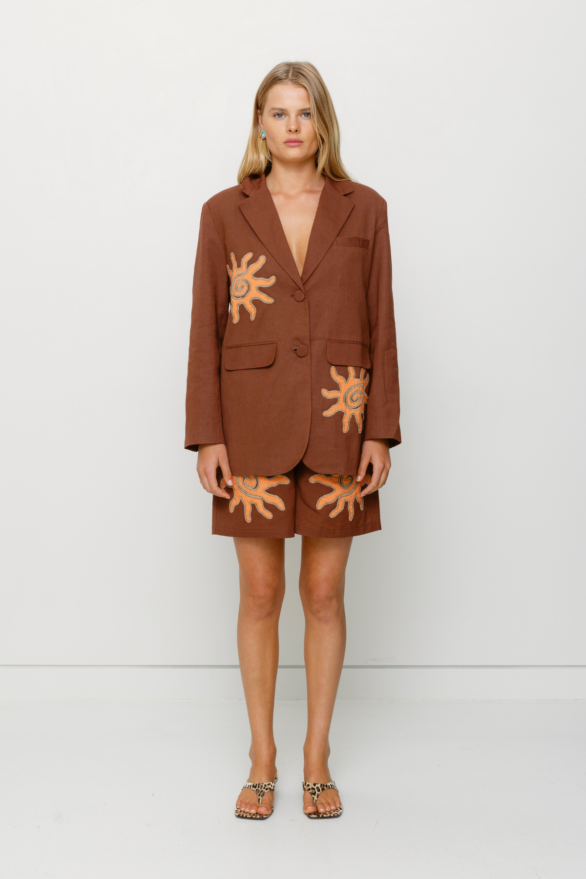 Chic, comfy and a little quirky perfectly describes the Sueno Blazer. This blazer is the answer to all your summer tailoring questions, featuring a structured silhouette and sleek design lines, it’s adorned with custom TWG embroidered motifs. Perfect for the office styled over a dress or wear as a set the matching Sueno Shorts for a stunning coordinated look.