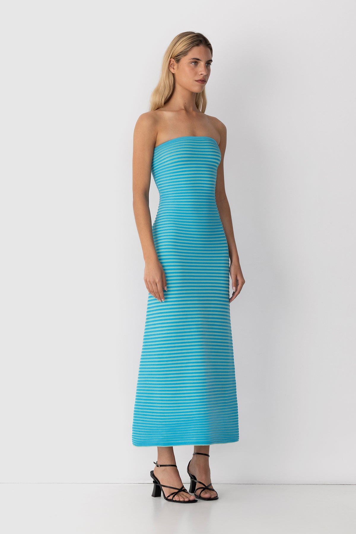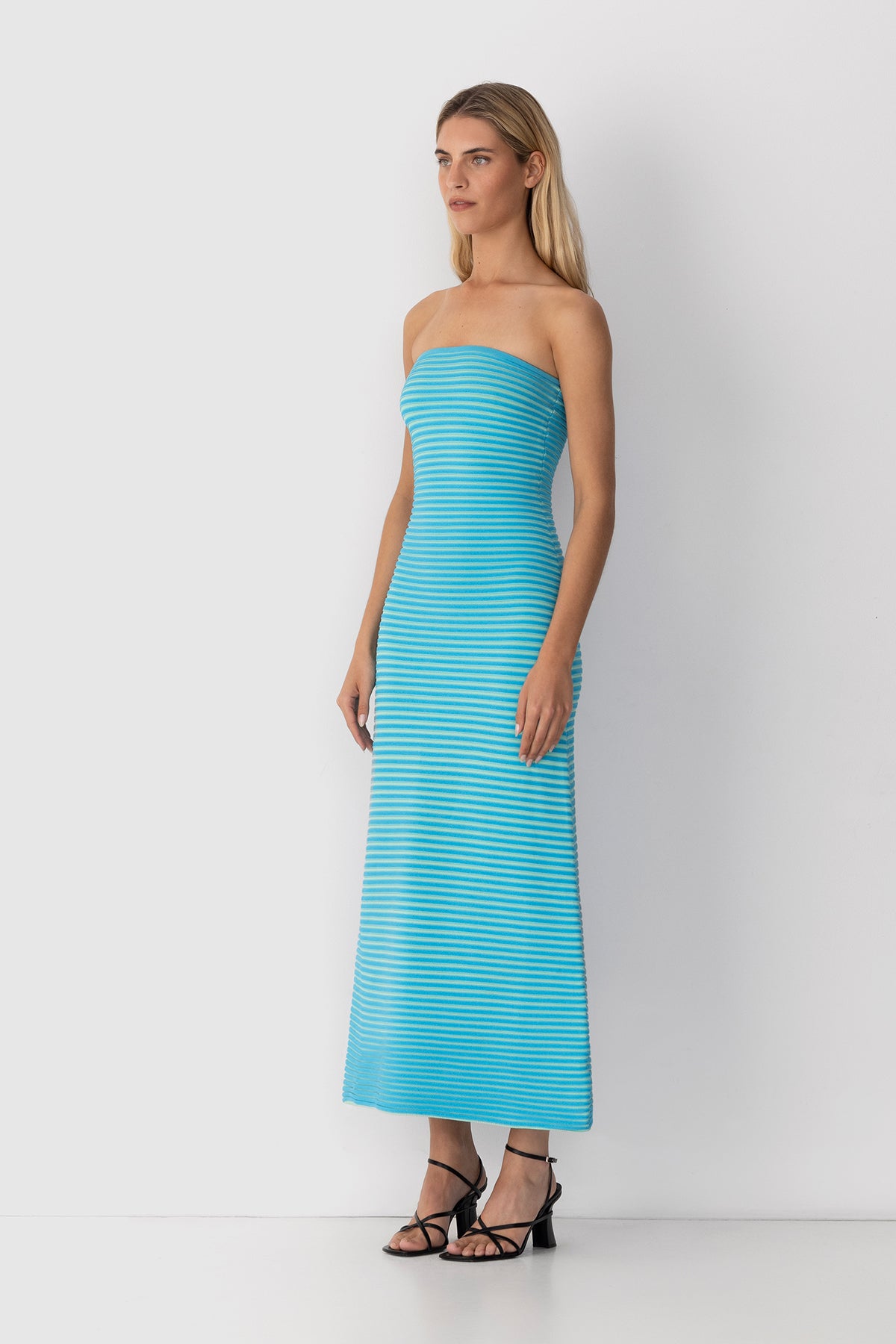 A body con style in our tonal striped knit, the Sunmor is comfort meets sexy. Style the Sunmor as a party dress, cocktail dress or formal dress; whether you dress up with strappy heels and bold accessories, or dress down with flats and a denim jacket, the Sunmor can be reinvented for casual days or moments to remember.